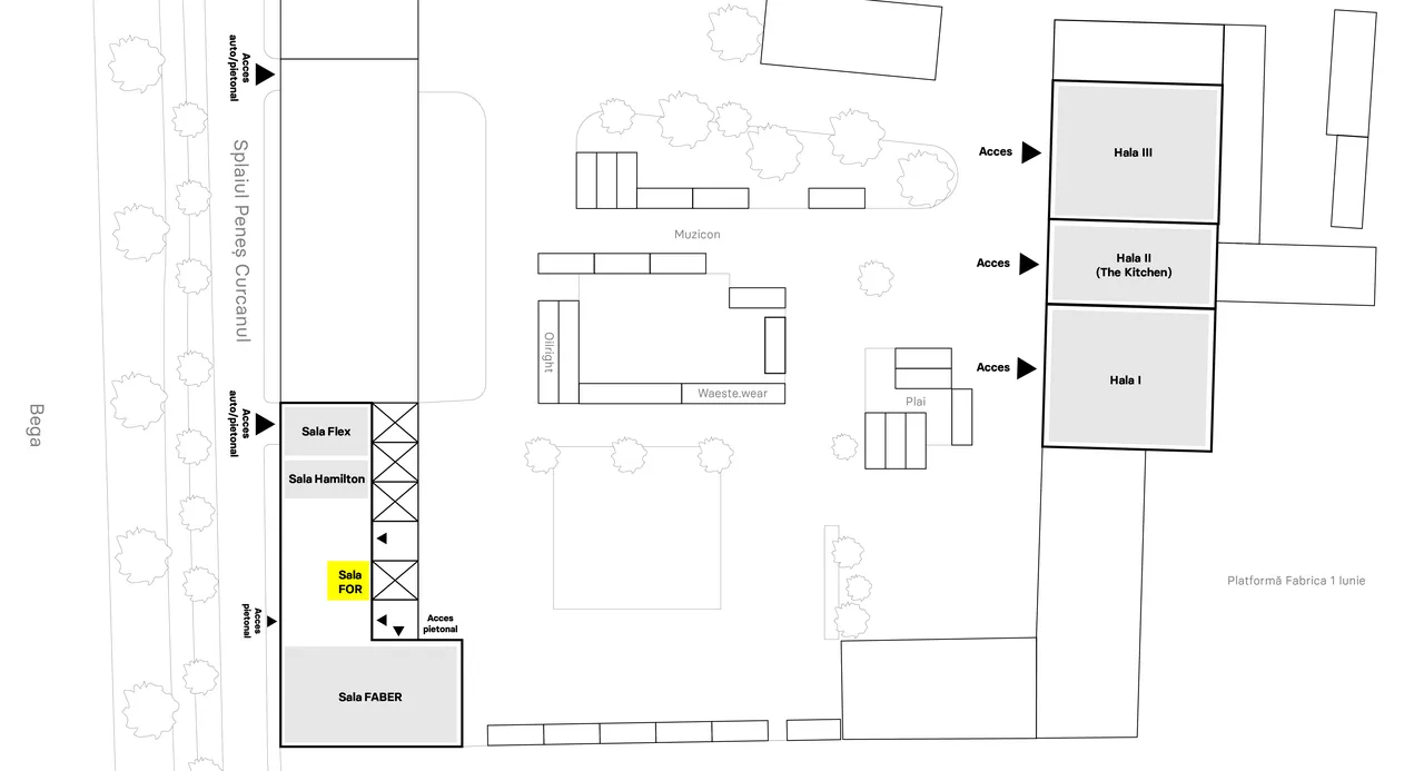 Echipa FOR deține o sală de întâlniri și spații comune de socializare. Sala de ședințe reprezintă un spațiu privat, dar în același timp deschis, cu ferestre mari care deschid vederea spre Bega, pe de o parte, și spre curtea Faber, pe de altă parte. Un spațiu cu multă lumină, care comunică vizual cu exteriorul.